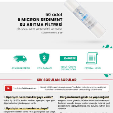 Açık Kasa Su Arıtma Cihazı için 5 Mikron Sediment Filtre 50 Adet